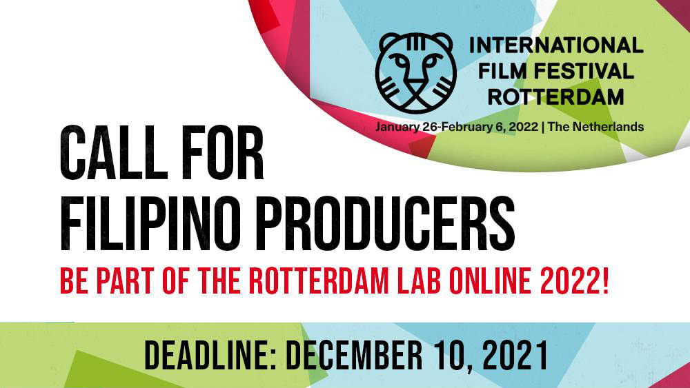 MANILA, PHILIPPINES, DECEMBER 3, 2021 — The Film Development Council of the Philippines (FDCP) is offering an opportunity for budding producers to attend the international training and networking workshop Rotterdam Lab online of the 51st International Film Festival Rotterdam (IFFR) in the Netherlands from January 24 to 28, 2022.